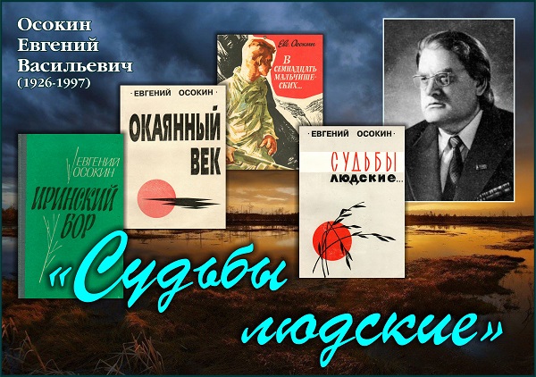 С 1 по 28 февраля 2026 года в Центре краеведческой информации муниципальной библиотеки «Сибирская» (ул. Колхозная, 9/1) будет работать книжная выставка «СУДЬБЫ ЛЮДСКИЕ» о творчестве томских писателей – юбиляров февраля.Один из разделов выставки посвящён 100-летнему юбилею ЕВГЕНИЯ ВАСИЛЬЕВИЧА ОСОКИНА (14 февраля 1926, д. Крутая Болотненского района Новосибирской области – 6 июля 1997, пос. Тимирязево Томского района Томской области) – участника Великой Отечественной войны, томского прозаика, журналиста, члена Союза писателей СССР. 28.01.2026 г.