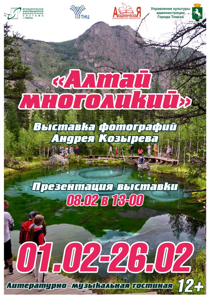 8 февраля в 13-00 в литературно-музыкальной гостиной муниципальной библиотеки «Академическая» (ул. Королёва, 4) состоится презентация фотовыставки АНДРЕЯ КОЗЫРЕВА «АЛТАЙ МНОГОЛИКИЙ». Автор представит гостям свои работы, созданные во время путешествий, а также расскажет историю каждого снимка и ответит на вопросы.Выставка и презентация организованы совместно с Томским научным центром Сибирского отделения академии наук (ТНЦ СО РАН) в рамках цикла мероприятий, посвящённых Дню российской науки. Вход свободный! 01.02.2026 г.
