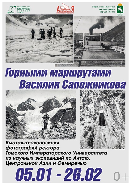До 26 февраля 2026 года в муниципальной библиотеке «Академическая» (ул. Королёва, 4) проходит выставка фотографий из коллекции профессора, ректора Томского университета, исследователя и путешественника В. В. Сапожникова.На выставке представлены фотоснимки, которые были сделаны учёным во время рабочих поездок по Алтаю, Семиречью, Западной Монголии и другим территориям. На редких кадрах конца XIX в. - начала XX в. можно увидеть горные пейзажи, ключевые точки маршрута и повседневную жизнь экспедиций, а также внешний облик и быт представителей местного населения. Выставка организована при содействии томского фотографа М. Дронова к 165-летию Василия Васильевича Сапожникова. Посетить выставку можно в часы работы библиотеки: понедельник-пятница с 11:00 до 19:00, воскресенье - с 10:00 до 18:00 (выходной - суббота). 02.02.2026 г.