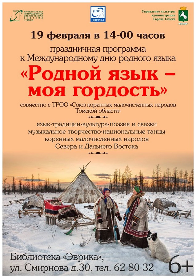 19 февраля в 14-00 в муниципальной библиотеке «Эврика» (ул. Смирнова, 30) пройдёт праздничная программа «Родной язык – моя гордость», посвящённая Международному дню родного языка. Участников ждёт встреча с представителями коренных малочисленных народов Севера, которые помогут раскрыть языковое разнообразие в Томской области.Гости библиотеки узнают об истории праздника, о величии и богатстве языковой культуры России, о значении родной речи для человека. На мероприятии будет присутствовать Л. И. Петушихина, председатель Томского регионального отделения «Союз женщин России», которая подчеркнёт важность сохранения родного языка для объединения семьи и воспитания детей. 09.02.2026 г.